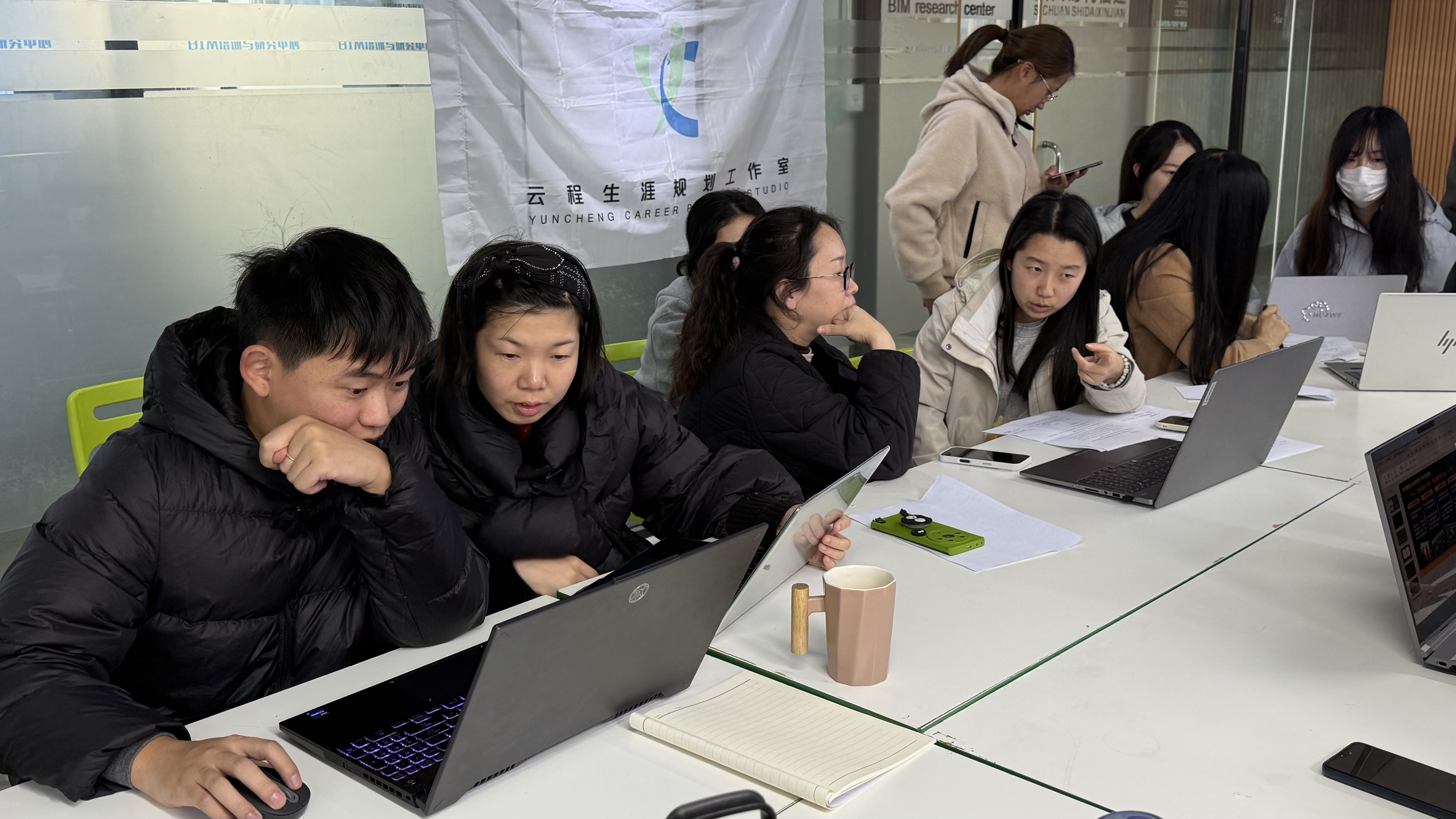 就业指导中心老师以及学院辅导员按照赛道分组,对参赛选手的PPT、视频脚本、现场展示等内容进行了“一对一”指导。老师们从逻辑结构、内容深度、案例支撑、语言表达等方面提出了针对性的修改建议,帮助学生进一步完善作品、提升现场表现力。