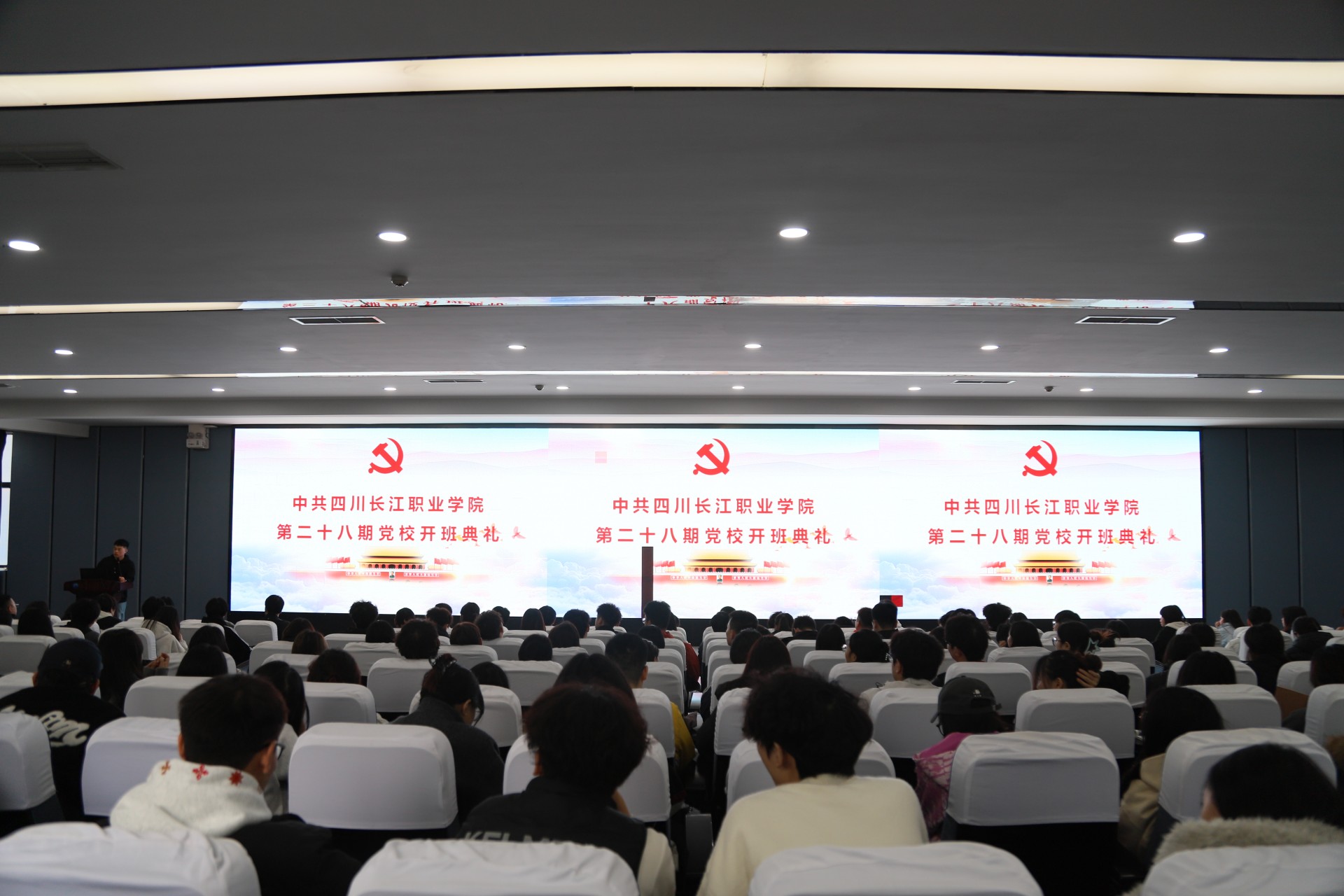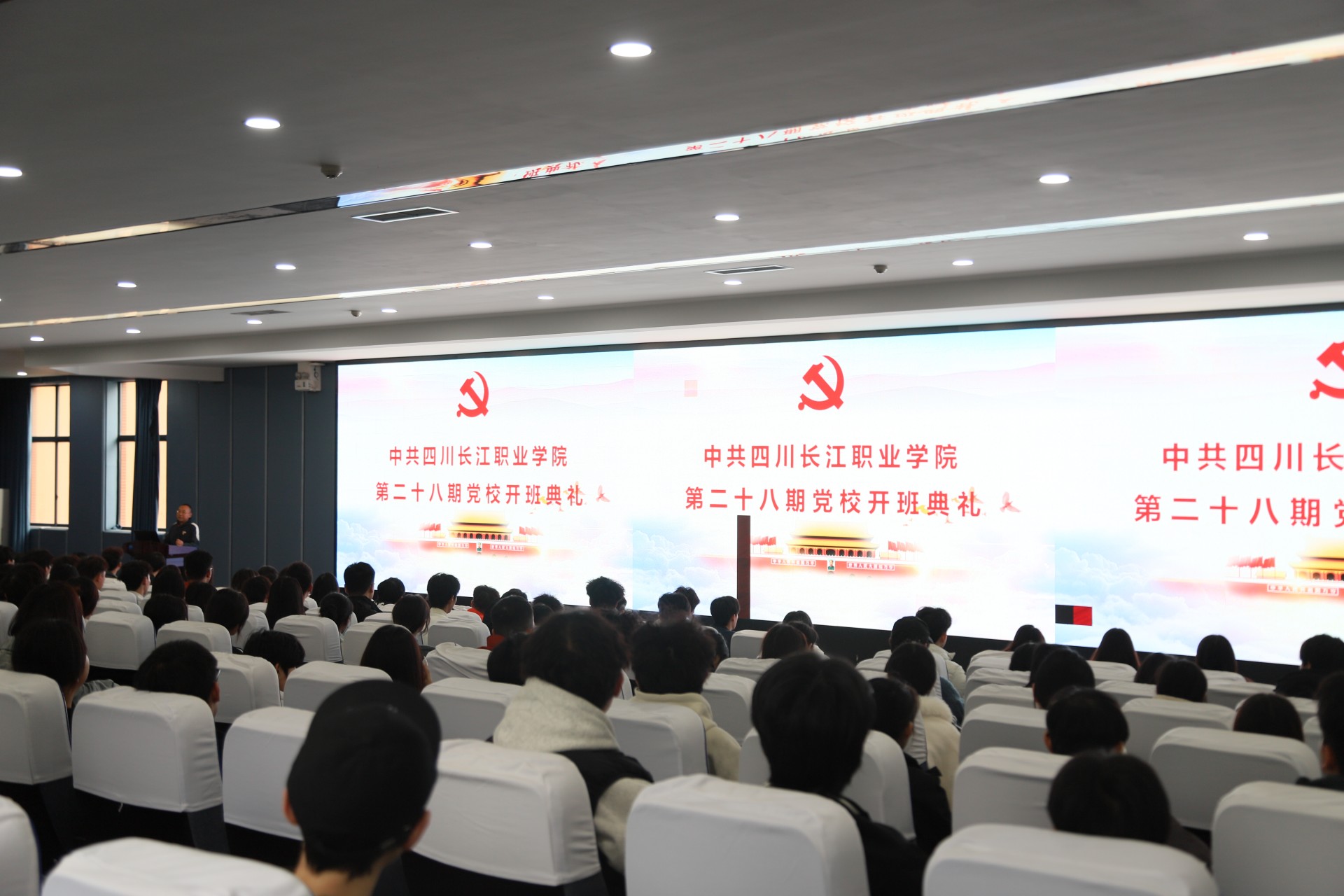 【本网消息】(党委办公室 程春芳、智慧健康与管理学院 潘媛 供稿)2025年11月14日中午,四川长江职业学院党校第28期入党积极分子培训班开班仪式在新学术报告厅隆重举行。现场气氛热烈而庄重,200余名怀揣着对党的深厚感情与坚定信仰的学员齐聚一堂,共同开启了这段意义非凡的思想政治学习与党性锻炼之旅。