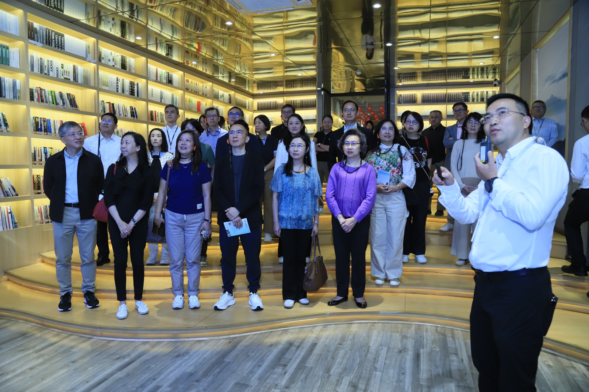 在“蓉港产教融合园”暨蓉港企业出海服务中心展板前,蓉港企业出海服务中心总经理黄威向研修班一行介绍了中心以“双基地、双中心”协同布局赋能企业出海的运营模式。中心在成都设有“蓉港荟”作为西部企业出海的本土支撑与服务枢纽,在香港尖沙咀港晶中心设有前端视窗,旨在为企业提供一站式、全链条出海支援服务。