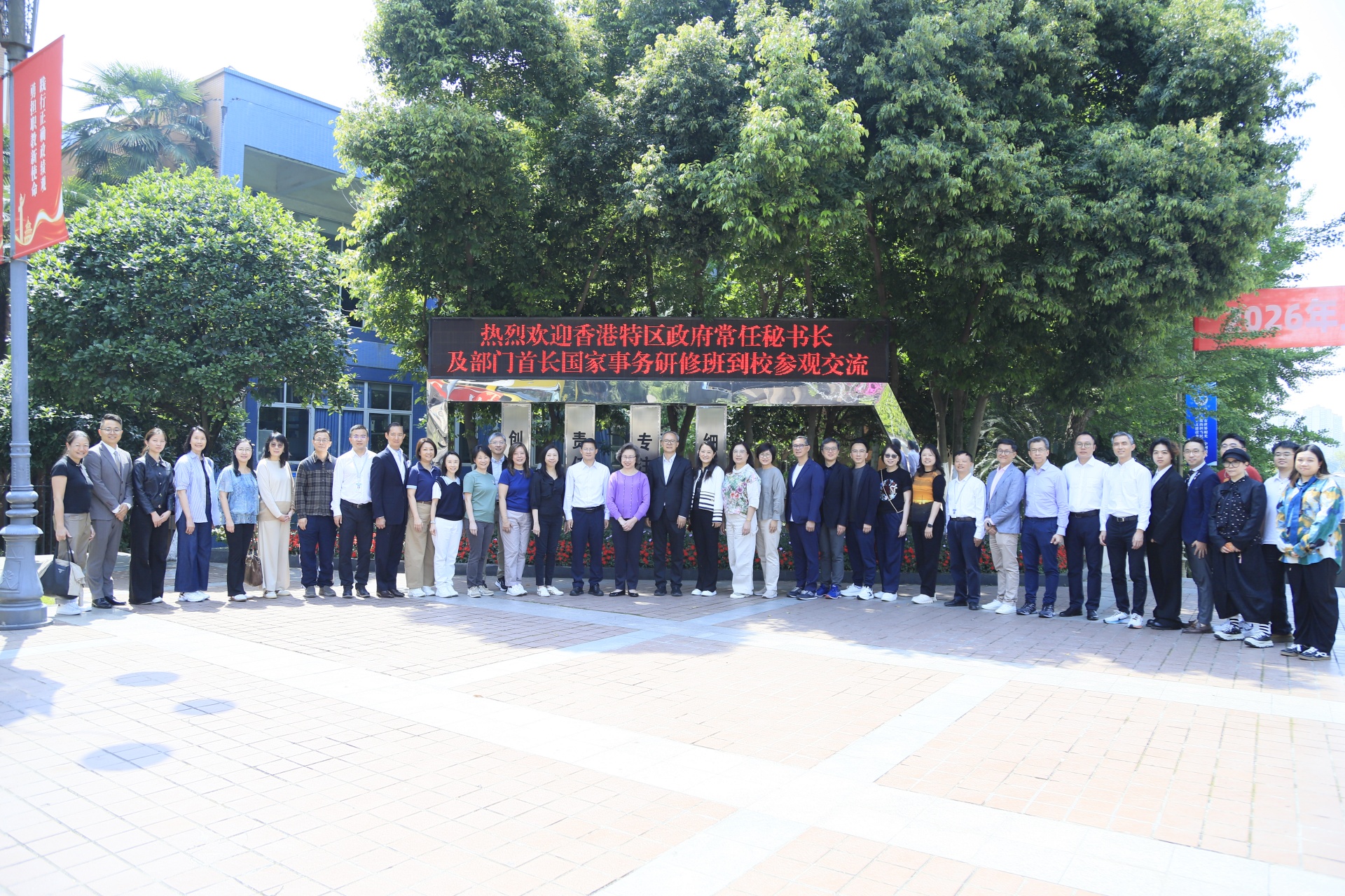 【本网消息】(合作处陈雨薇供稿)4月25日,香港公务员事务局局长杨何蓓茵率香港特别行政区政府常任秘书长及部门首长国家事务研修班全体学员到访我校川港澳台青少年交流基地。