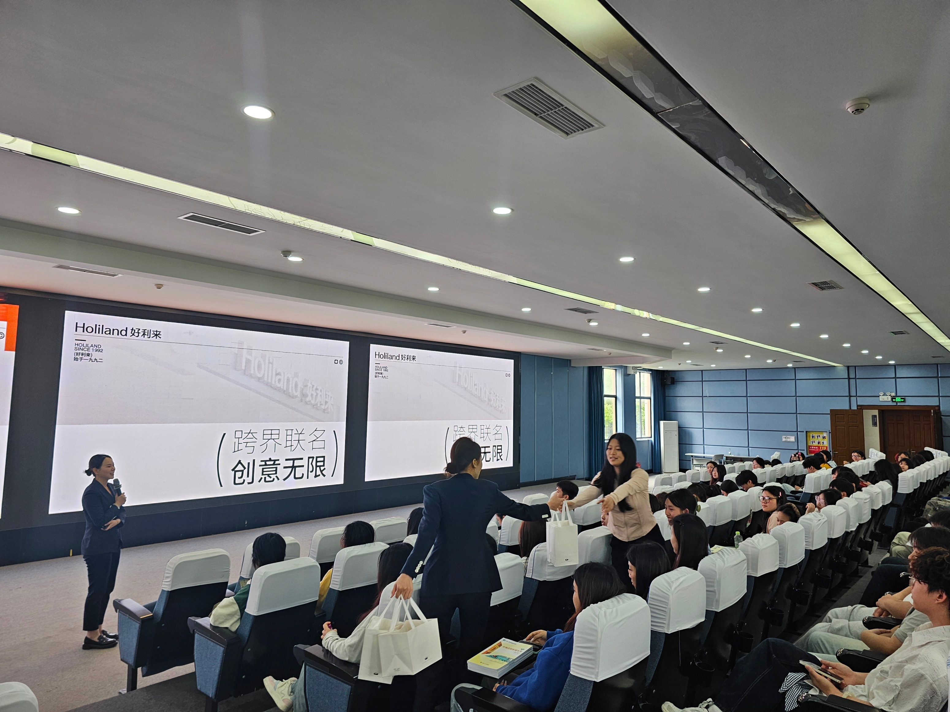 宣讲会上,好利来邓旭敏经理围绕企业发展、文化理念、岗位设置、培养体系、薪酬福利及晋升通道进行全面讲解,重点介绍储备干部、分店出纳、服务顾问等实习就业岗位,清晰呈现一线到管理层的成长路径,帮助同学们了解行业发展前景。企业就实习安排、食宿、社保等问题逐一回应,现场互动热烈。