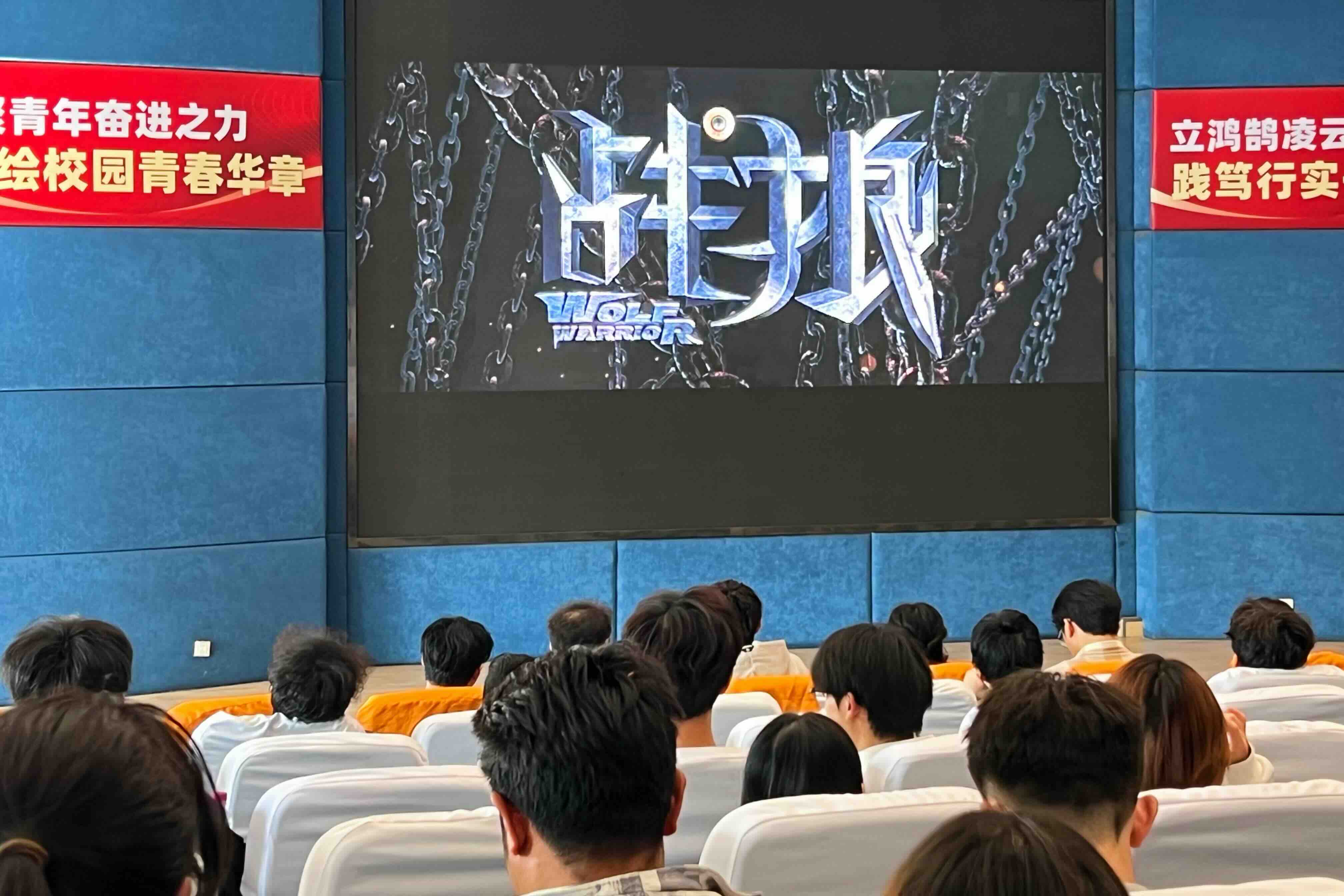 灯光渐暗,经典影片《战狼》正式开映。在场同学沉浸式感受着光影带来的精神洗礼。