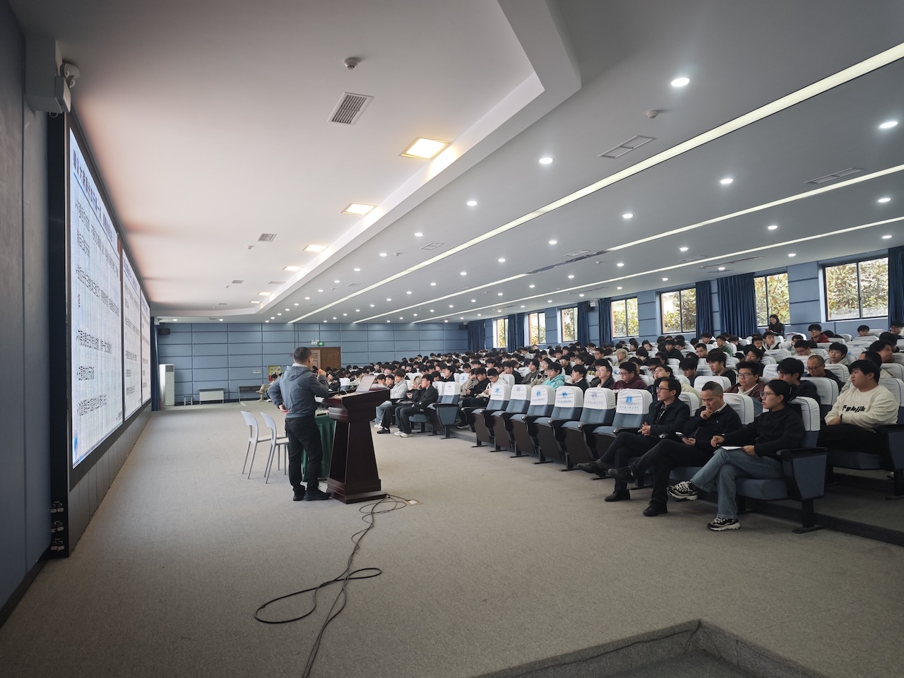 魏科飞老师从人才培养的专业角度,强调了岗位实习是教学计划中的重要环节,需全员参与。他分析了实习的多重目标,建议同学们优先考虑校企合作单位,以保障实习安全与薪资待遇,同时提醒大家注意人身财产安全,防范各类诈骗信息。