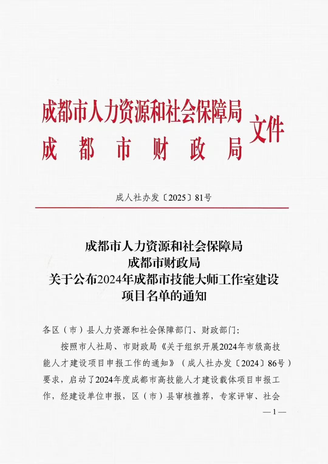 【本网消息】(商贸与融媒体学院 彭姝弋供稿成都市人力资源和社会保障局、成都市财政局联合印发《关于公布2024年成都市技能大师工作室建设项目名单的通知》,由我校商贸与融媒体学院牵头申报的“成都市杨金焘包装设计技能大师工作室”,凭借扎实的申报基础、鲜明的产业服务导向和雄厚的师资技术力量,经建设单位申报、区(市)县审核推荐、专家评审、社会公示及市人社局局长办公会、局党组会审议等规范程序,成功入选2024年成都市技能大师工作室建设项目,成为全市40个获批的市级技能大师工作室之一。