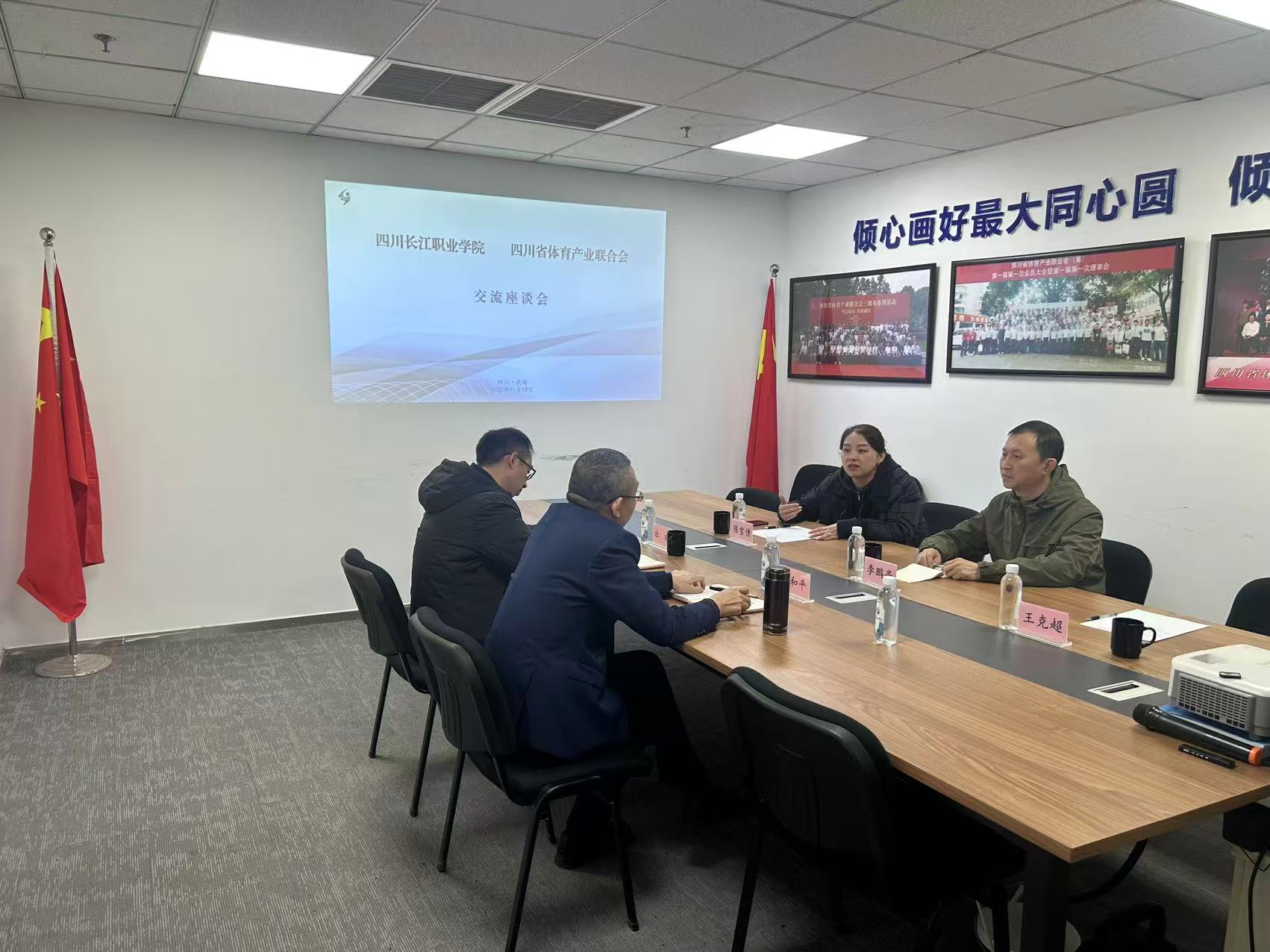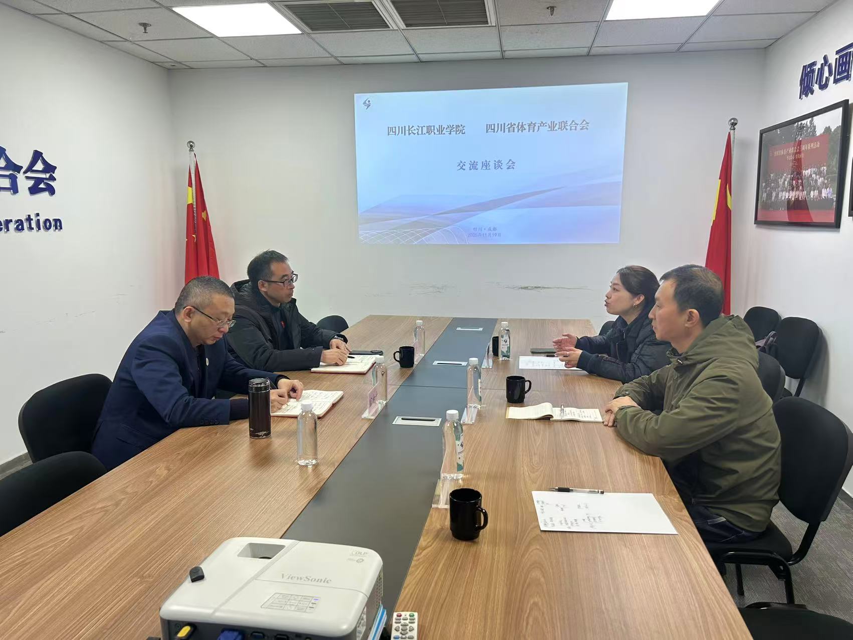 【本网消息】(智慧城市与低空应用学院王克超供稿)2025年11月19日,四川长江职业学院智慧城市与低空应用学院副院长李鹏亮、体育工作部部长陈雪倩、体育专业教师王克超一行到访四川省体育产业联合会,与联合会秘书长管和平、体育建设专委会秘书长杜欢举行了座谈交流。
