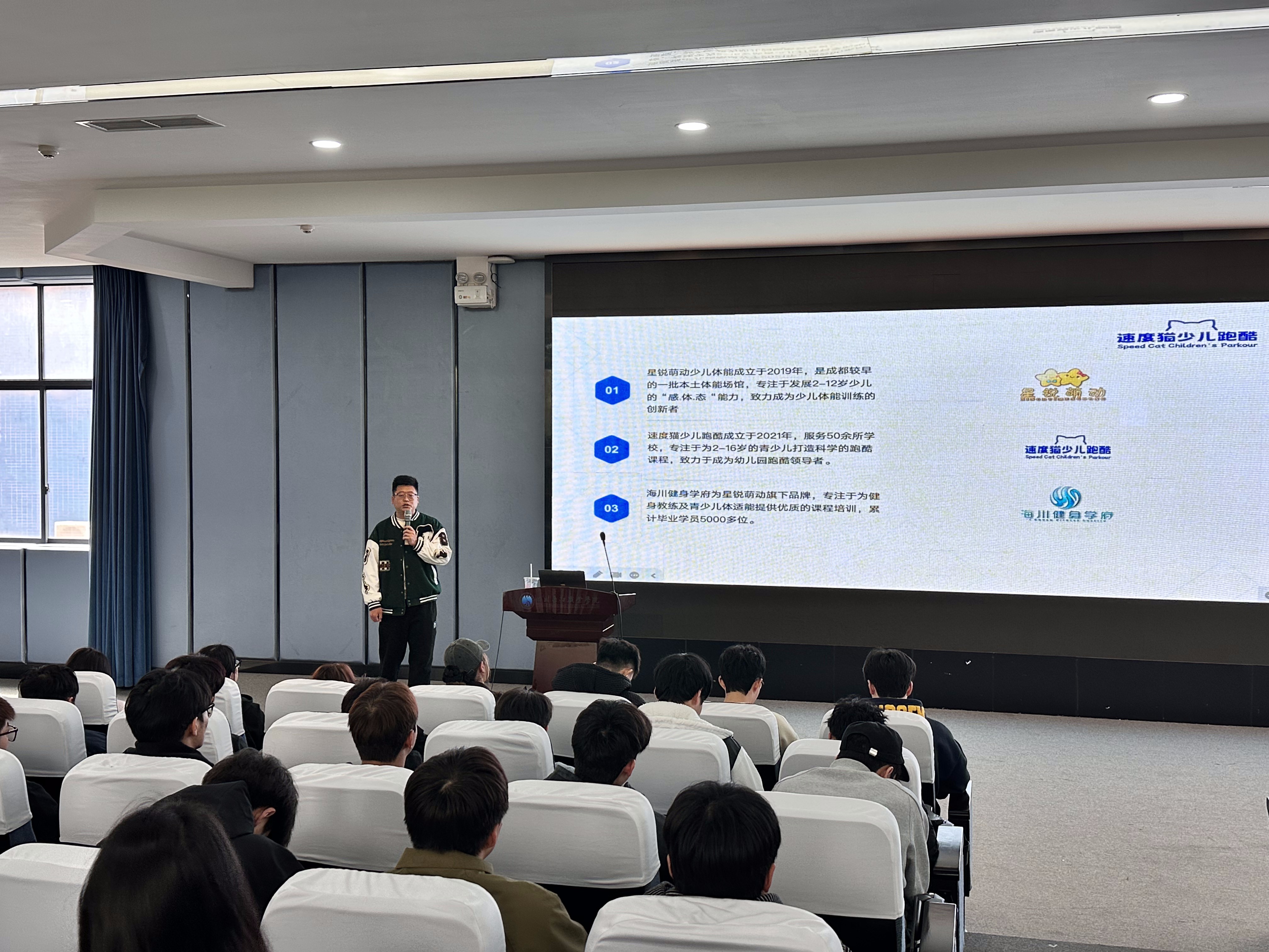 【本网消息】(智慧城市与低空应用学院彭家丽供稿)为深化校企合作、拓宽体育专业学子就业渠道,3月17日,星锐萌动负责人鲁天鑫莅临四川长江职业学院,面向 2024 级体育专业学生开展跑酷教练岗位专场招聘宣讲。