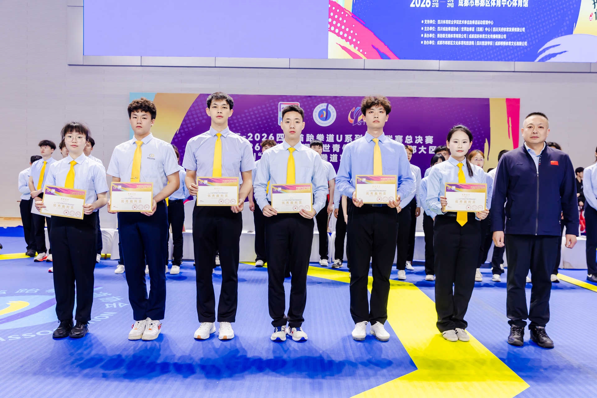 【本网消息】(智慧城市与低空应用学院 宋亮亮供稿)3月27日至29日,2025-2026四川省跆拳道U系列超级联赛总决赛、跆拳道大满贯世青俱乐部联赛西部大区赛、四川“选星计划”跆拳道项目精英选拔赛在成都市郫都区体育馆落幕。此次赛事汇聚全省1000余名青少儿运动员,是四川省跆拳道领域规格高、规模大、影响力广的综合性赛事。我校2023级学生程北、2024级学生黎鑫受邀任赛事裁判,他们以公平公正和专业严谨完成任务,程北获“优秀裁判员”称号,展现我校学子素养与风采。