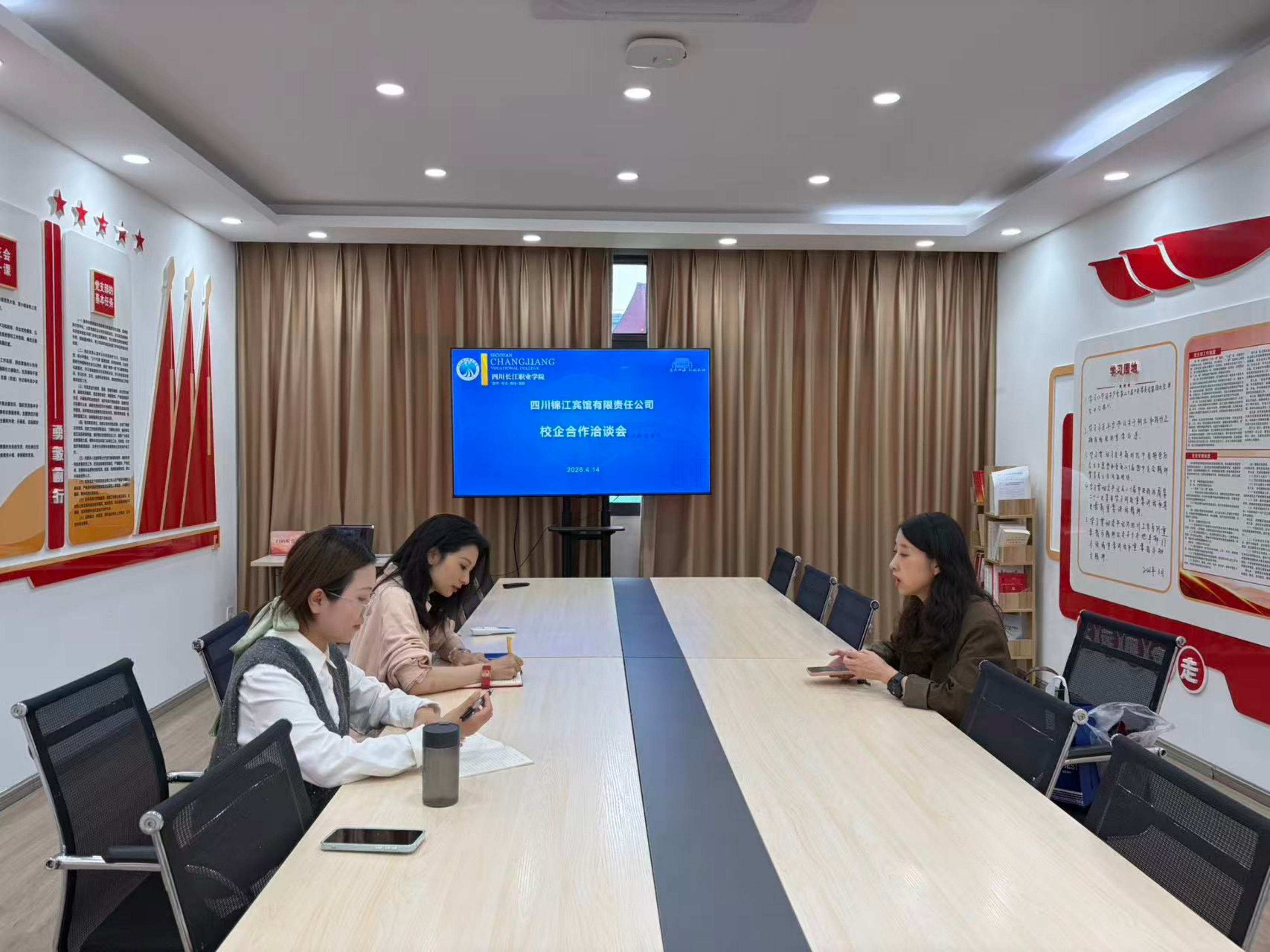 【本网消息】(智慧健康与管理学院 石梦琴供稿)2026年4月14日,四川锦江宾馆有限责任公司人事经理王总一行莅临智慧健康与管理学院,与公共管理系主任助理刘琳琳、酒店管理与数字化运营专业负责人王杨伟及烹饪工艺与营养专业教师石梦琴开展校企合作洽谈,聚焦实习就业、定向培养、技能竞赛三大核心领域,共谋产教融合新路径。