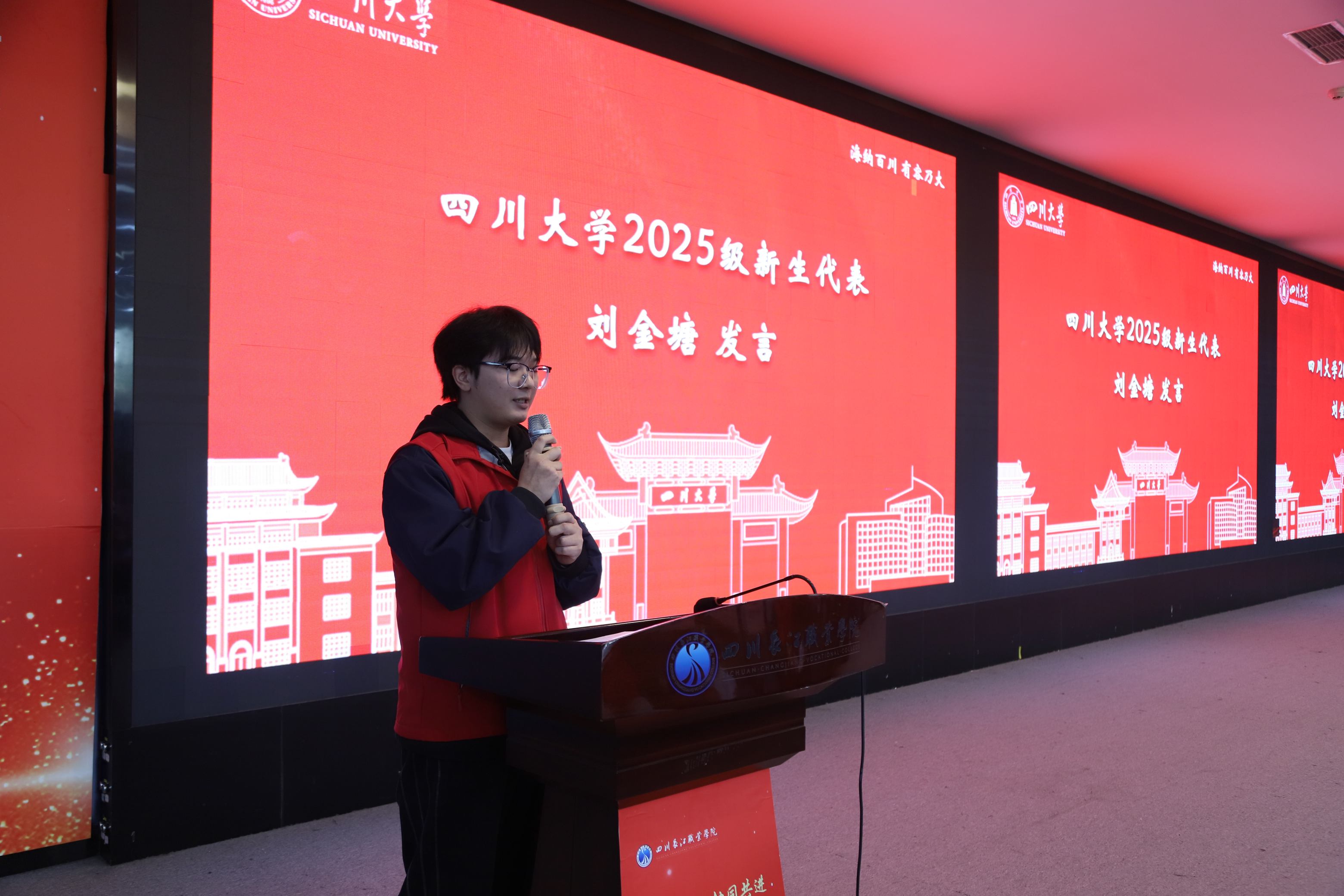 四川大学吴静汶主任发表致辞。她向全体新生表达了热烈欢迎与殷切期望,分享了四川大学深厚的学术底蕴与育人传统。吴主任的寄语让在场师生深刻感受到了合作高校的支持与关怀,为新生们注入了来自百年学府的信心与动力。