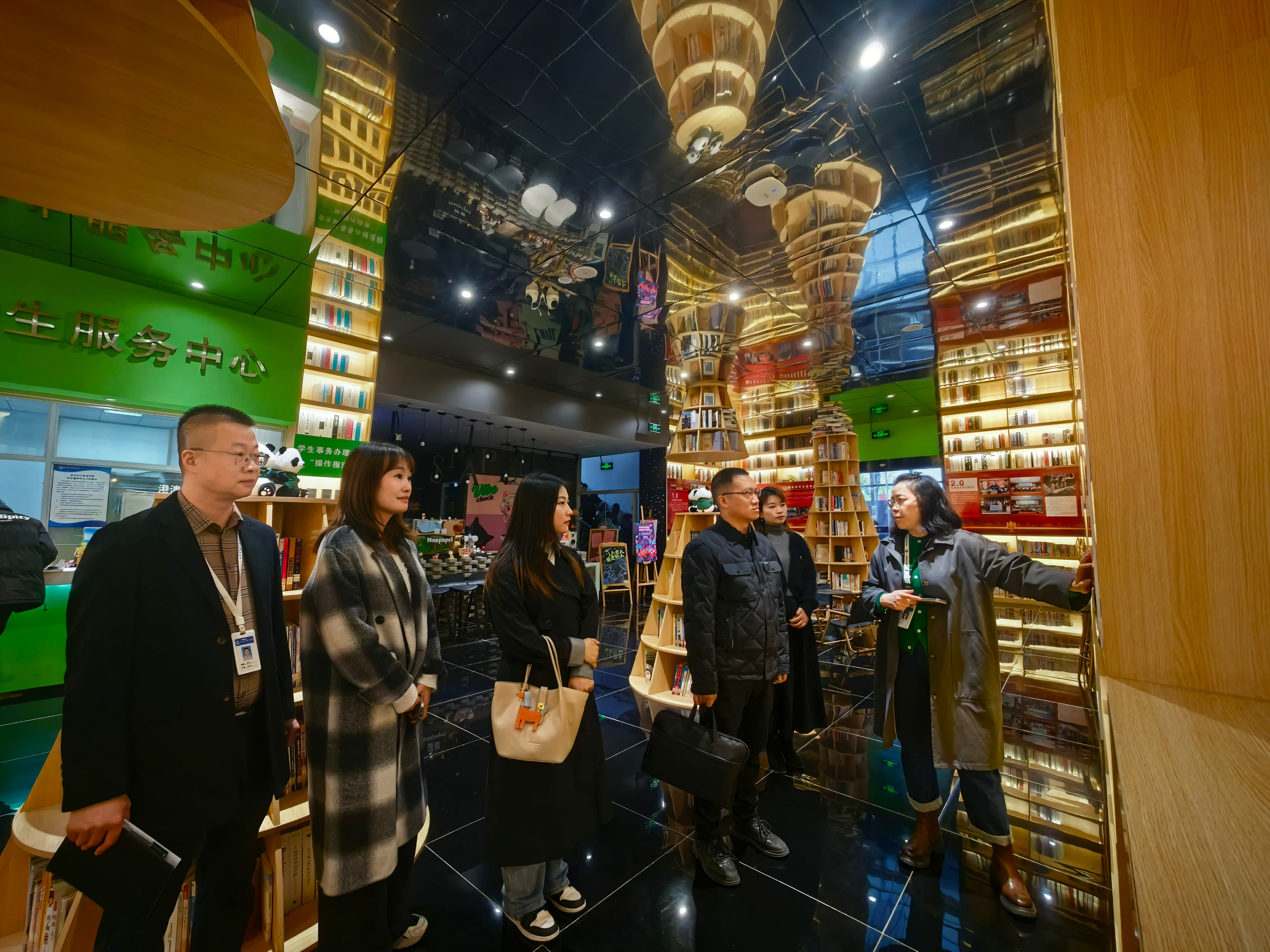 在刘颖同志的带领下,一行人参观了我校川港澳台青少年交流中心,听取了1.0川港青年互动交流、2.0香港青年来川实习、3.0香港青年来川就业创业、4.0推动川港教育合作、5.0四川学子赴港发展等介绍。
