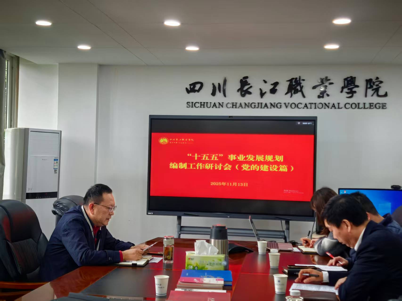 【本网消息】(党委办公室 刘青)为科学谋划学校党的建设未来发展蓝图,高质量推进“十五五”规划编制工作,11月13日下午,党的建设“十五五”专项规划编制工作研讨会在四川长江职业学院206会议室召开。会议由党委书记何志州主持,党委办公室、组织部、宣传统战部、教师工作部、学生工作部、保卫部、纪委办公室、团委、妇联、工会等相关负责人参会。
