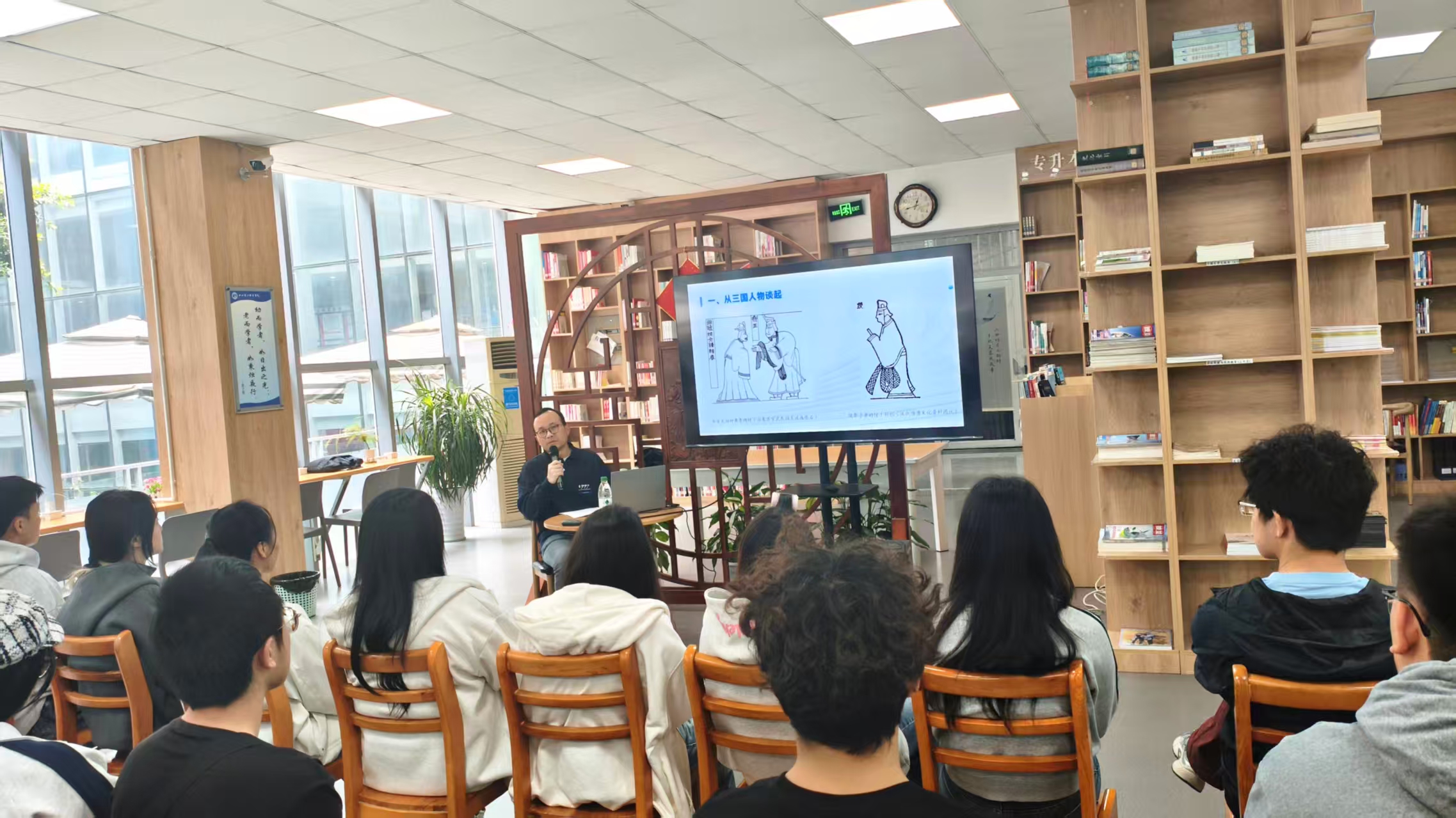 【本网消息】(教务部 图书馆 吕冯琼 供稿)4月22日,学校2026年阅读文化节“三国文化与历史遗存漫谈”专题讲座在图书馆二楼举办。成都武侯祠博物馆全国三国文化研究中心谢乾老师受邀主讲,50余名师生到场聆听。