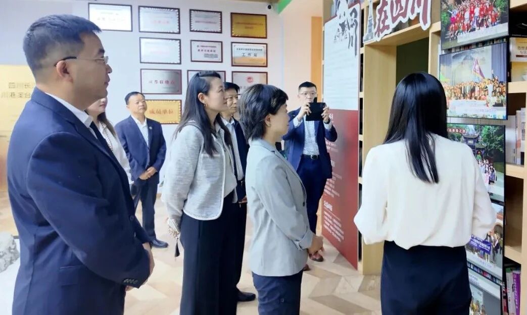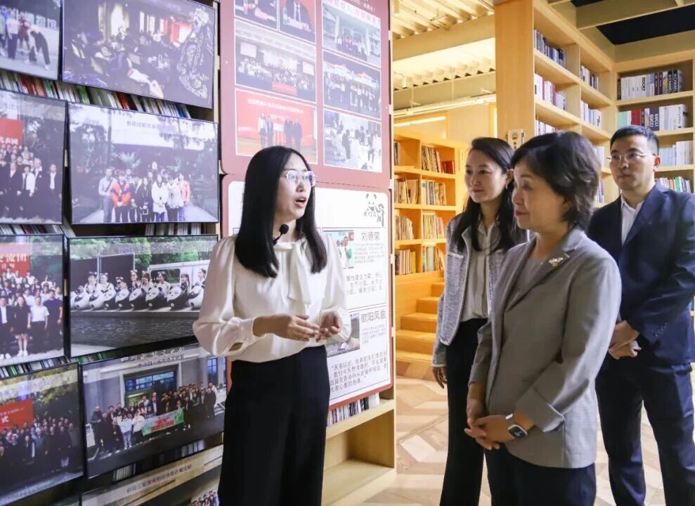 在学校校长韩虎、理事韩戌、川港职业与应用教育联盟川方联席理事长王嵩建的引导介绍下,蔡若莲博士一行参观川港澳台青少年交流基地、川港青年创新创业社区、蓉港产教融合园,深入了解学校开展的川港青年互访交流、川港职业教育合作等特色。