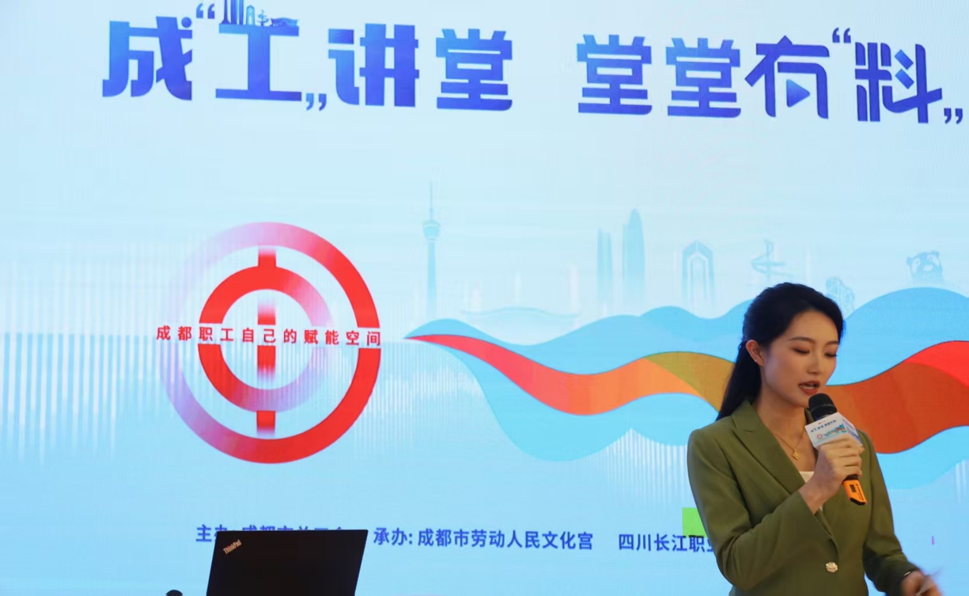 【本网消息】2025年10月31日下午,由成都市总工会主办、成都市劳动人民文化宫、四川长江职业学院承办的“成‘工’讲堂・堂堂有料”职工赋能空间活动在四川长江职业学院川港澳台青少年交流基地活动中心火热开启,“从‘搬砖’到‘发光’——解码百年工运史中的职工逆袭密码”为主题,通过线下讲座与线上直播联动,吸引线上线下近万名职工参与,掀起了学习工运精神热潮。
