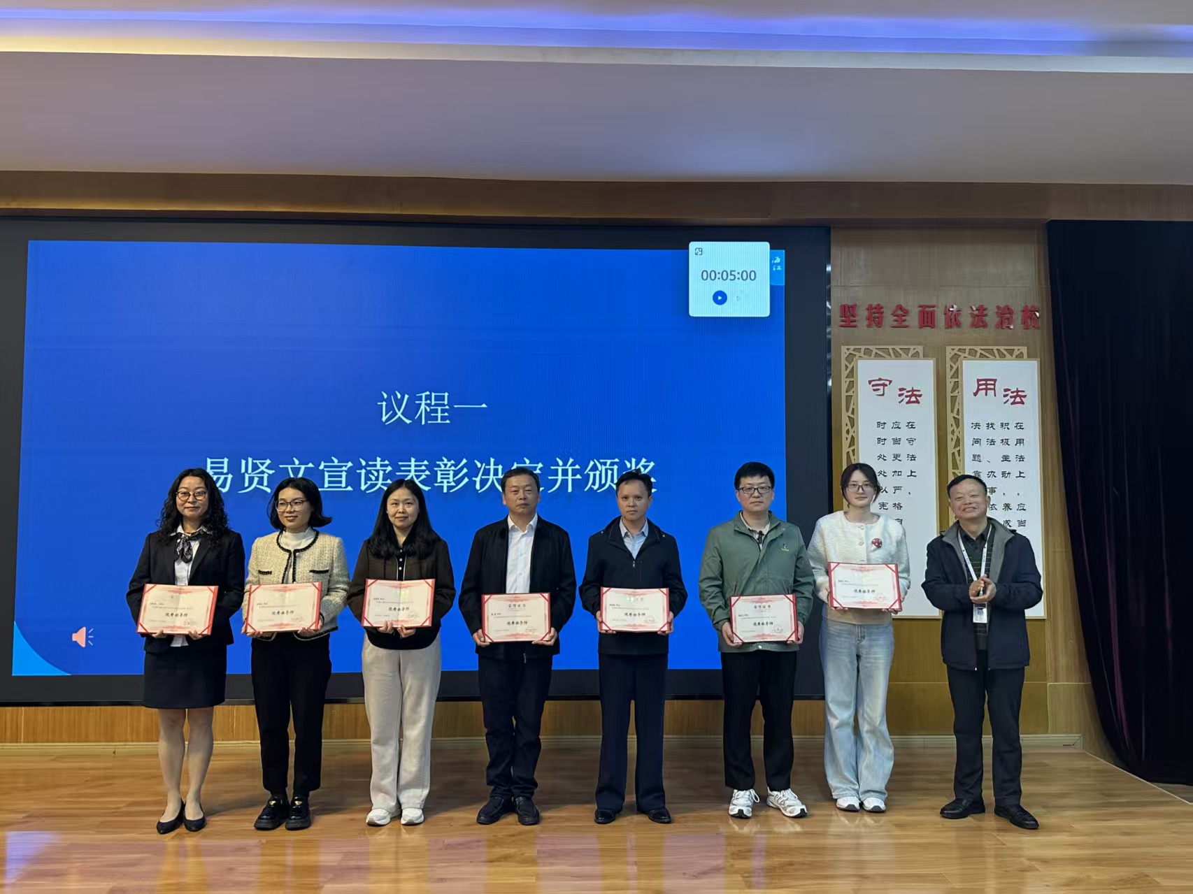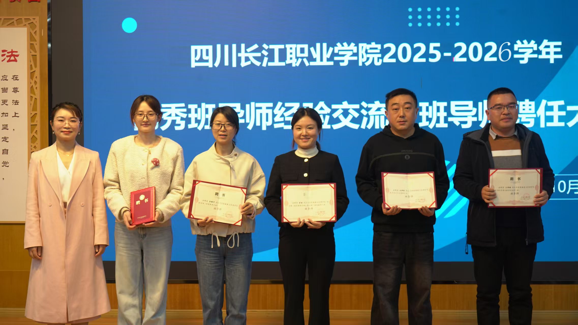 大会伊始,易贤文宣读《四川长江职业学院关于表彰2024-2025学年优秀班导师的决定》。易校长为郭树飞、蔡建平等十名优秀班导师颁发荣誉证书,对他们扎根育人一线、深耕班级管理的辛勤付出给予肯定。现场掌声雷动,既是对优秀班导师的致敬,也彰显了全校上下对育人工作的重视与支持。