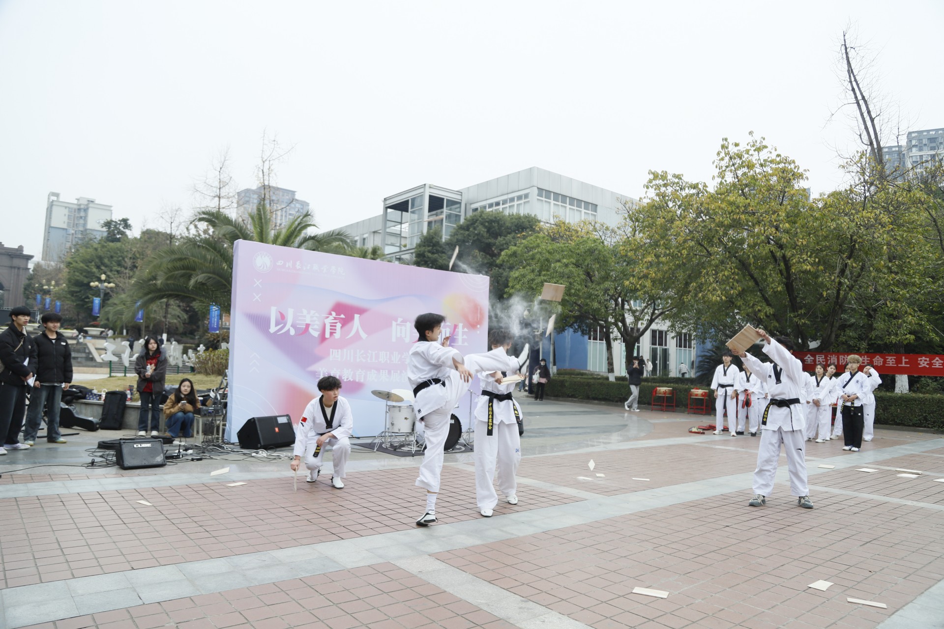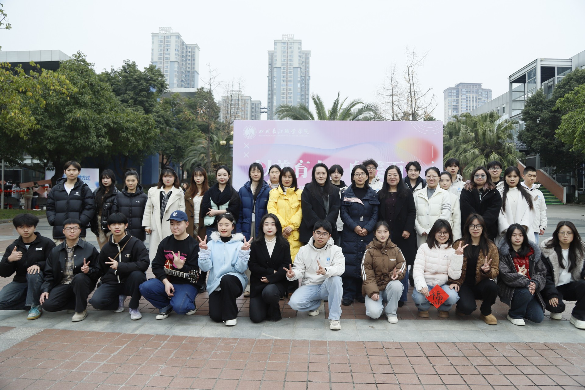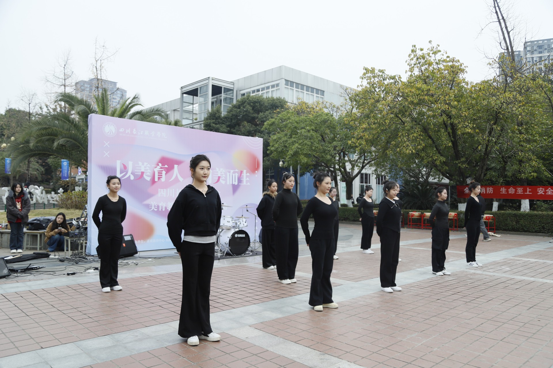 【本网消息】(素质教育中心 李泳敏供稿)为积极响应教育部“全面实施学校美育浸润行动”的号召,深入贯彻落实“五育并举”的教育方针,12月26日,四川长江职业学院“以美育人,向美而生”2025年美育教育成果展演在中心花园隆重开幕。本次活动由学校素质教育中心与校团委联合主办,校社团联合会承办。教务处副处长冯晓燕、素质教育中心李泳敏、各学工办主任助理等领导,以及公选课任课教师出席了活动,与同学们一同见证了这场艺术盛宴。