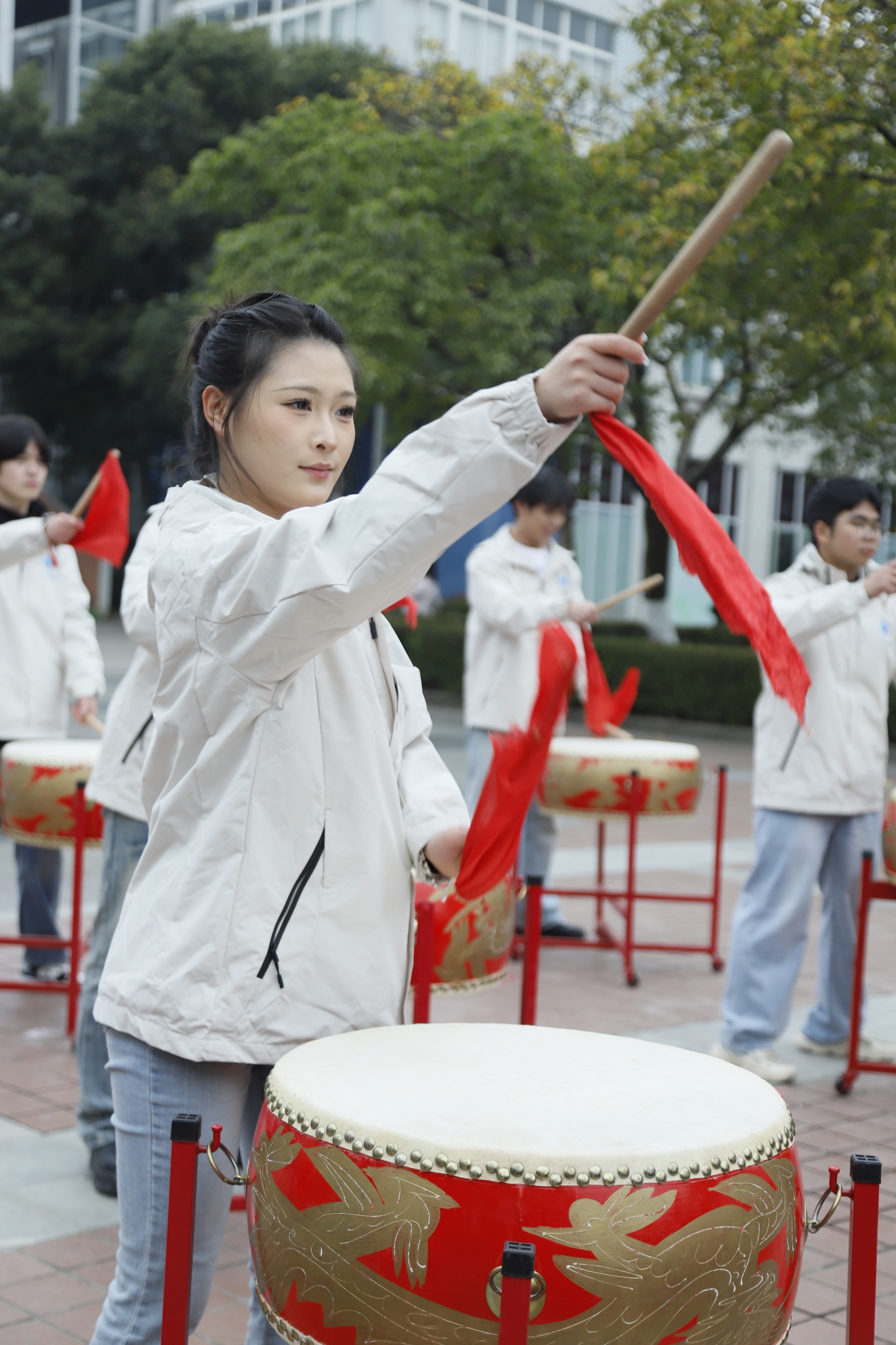 在本次展演活动中,公选课学生依次登场,以多元艺术形式展现美育的丰富内涵。李壮壮同学的吉他弹唱《天使带着我走》旋律悠扬,传递出真挚的青春情感;《韩国语言与文化》课程学生呈现的节目《声舞韩韵》,以传统口令表演为起始,结合动感十足的KPOP舞蹈,刚劲的口令与灵动的舞姿形成鲜明对比,展现出独特的艺术张力;《跆拳道》课程学员表演的《跆韵长江》动作刚劲有力,体现出体育与美育融合的独特美感。打击乐合奏奏响青春的旋律,英语歌曲《One Day》的演唱展现出语言与音乐的交融魅力,形体表演自信而优雅,粤语小组唱《元日迎春花》引发全场深切共鸣,中国大鼓合奏《象王行》则充分展现了中华优秀传统文化的深厚底蕴。