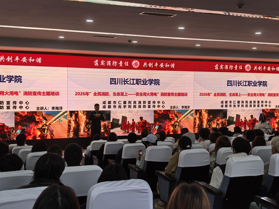 【本网消息】(后勤保卫处 田木乃供稿)为深入贯彻落实四川省教育厅关于深入开展消防 “生命通道” 整治行动的工作要求,切实筑牢校园消防安全屏障,保障师生生命财产安全,2026 年 3 月 13 日,四川长江职业学院特邀龙泉驿区消防救援大队两名消防战士莅临校园,开展消防设施专项检查,并于校内新学术报告厅为 420 名师生带来消防安全专题讲座。学院后勤保卫处、学生发展处相关负责人及师生代表参与本次活动。