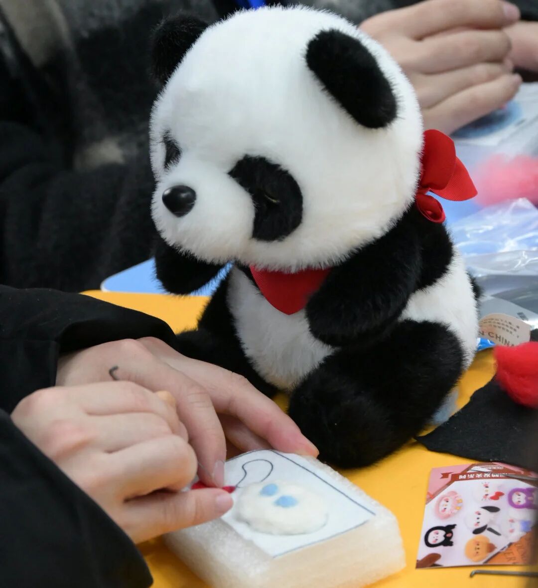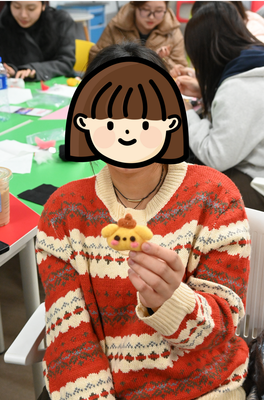 分享会结束后,最令人期待的非遗毛毡手工体验环节暖心上线!从羊毛材料的认知到毛毡戳制的技巧,老师耐心细致地讲解每一个步骤。川港青年们围坐一堂,一针一线地勾勒、塑形,在指尖的忙碌中感受非遗文化的魅力。原本蓬松的羊毛,在大家的巧手下逐渐变成一个个可爱的毛毡小物件。