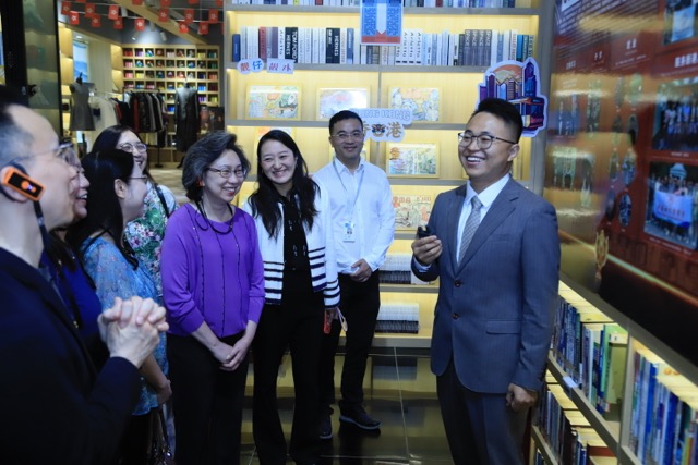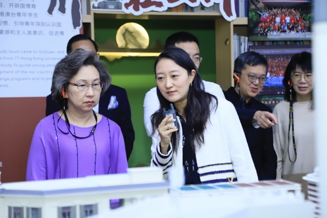 “蓉港荟”项目沙盘前,我校理事韩戌向研修班一行汇报了项目建设情况,她表示,项目将以川港经济建设为核心,发挥香港“超级联系人”作用,推进川港文化长廊、香港经济及人文艺术展、共享总部三大空间建设,发挥香港故事宣传、民心相通交流、职业教育实践、南向出海窗口四大功能,致力打造成为川港青年交流、教育合作、双创孵化、开放联动的重要载体。
