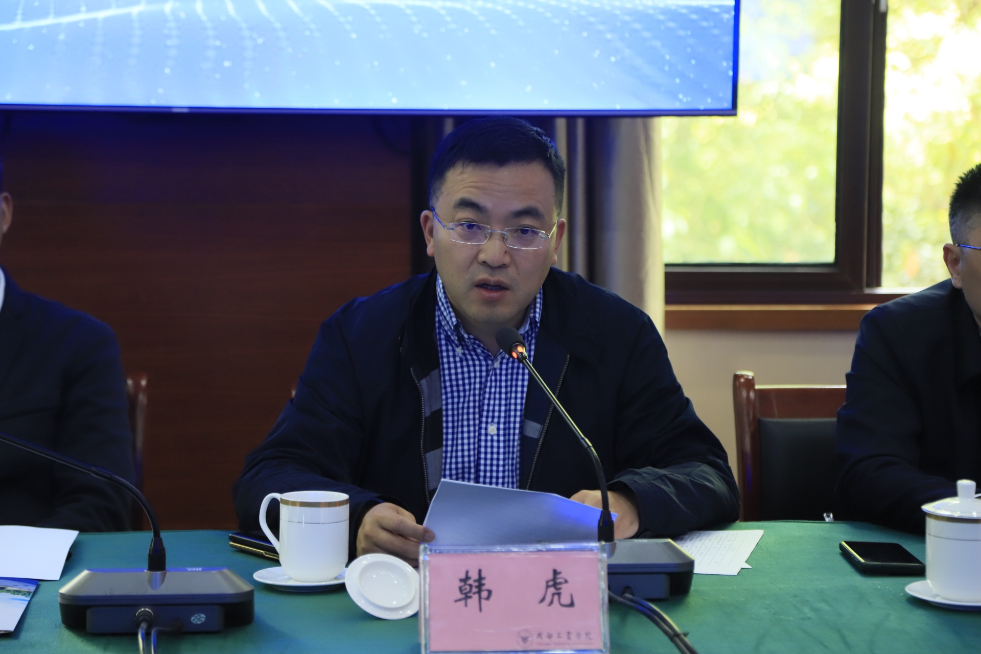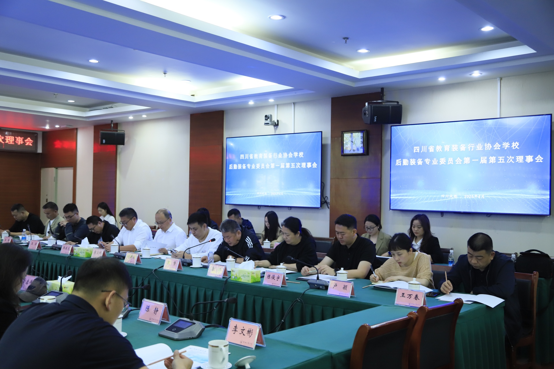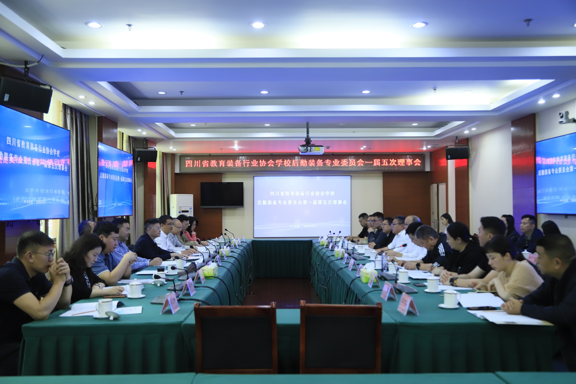 【本网消息】(后勤保卫处白秀琼供稿)4月23日,四川省教育装备行业协会学校后勤装备专业委员会(以下简称“专委会”)第一届第五次理事会议在成都工业学院成功召开。四川省学校国有资产与教育装备中心主任王国强,我校校长、专委会主任韩虎出席会议,会议由专委会秘书长张繁主持。我校作为专委会主任单位做好本次会议筹备及组织保障各项工作。