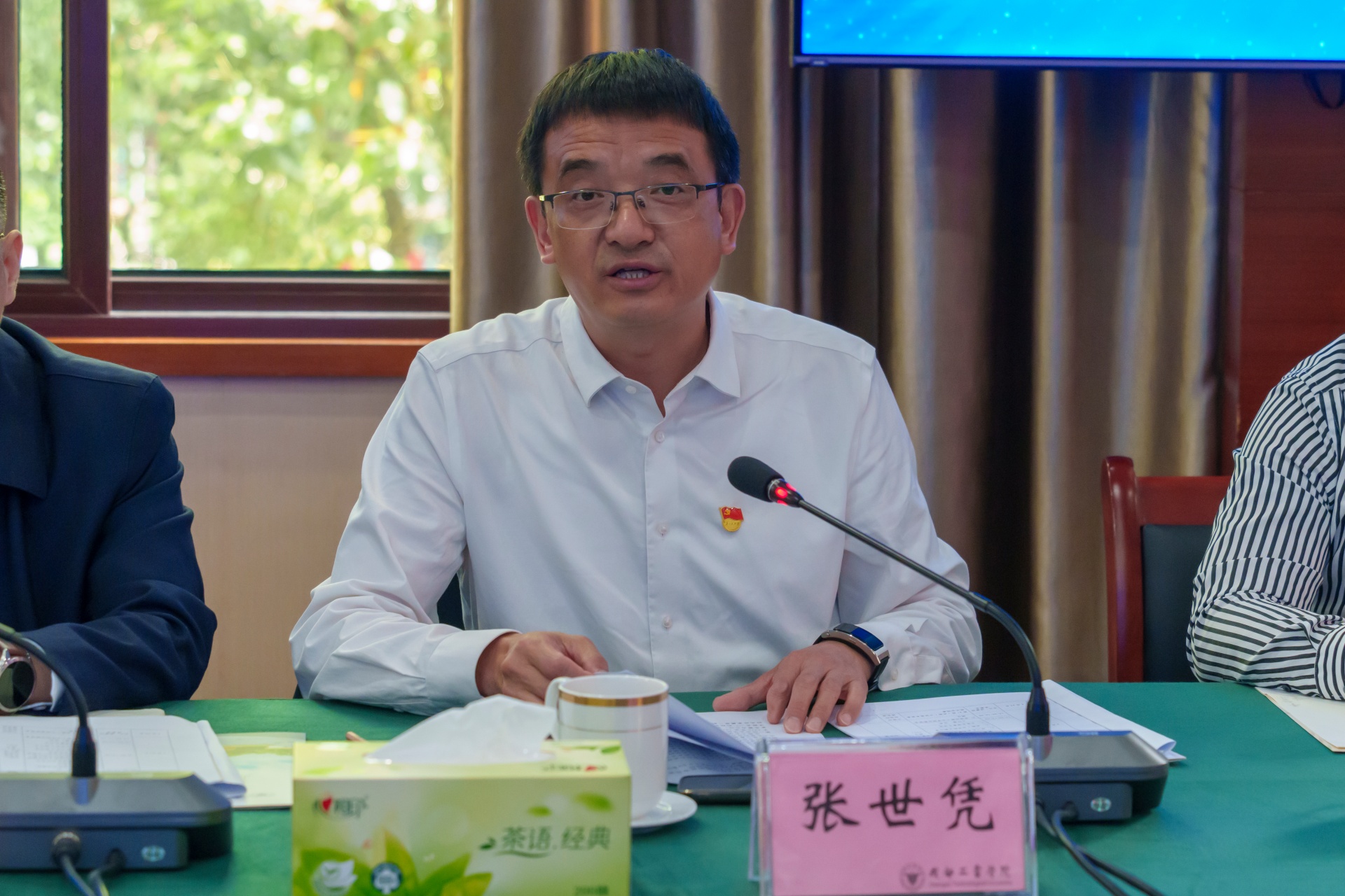 成都工业学院党委常委、副校长张世凭莅临会议并代表学院致辞,对各位嘉宾的莅临表示热烈欢迎,向长期关心支持学院发展的各界同仁致以诚挚谢意,并全面介绍了学校办学基础、百年办学历史与后勤装备发展理念。