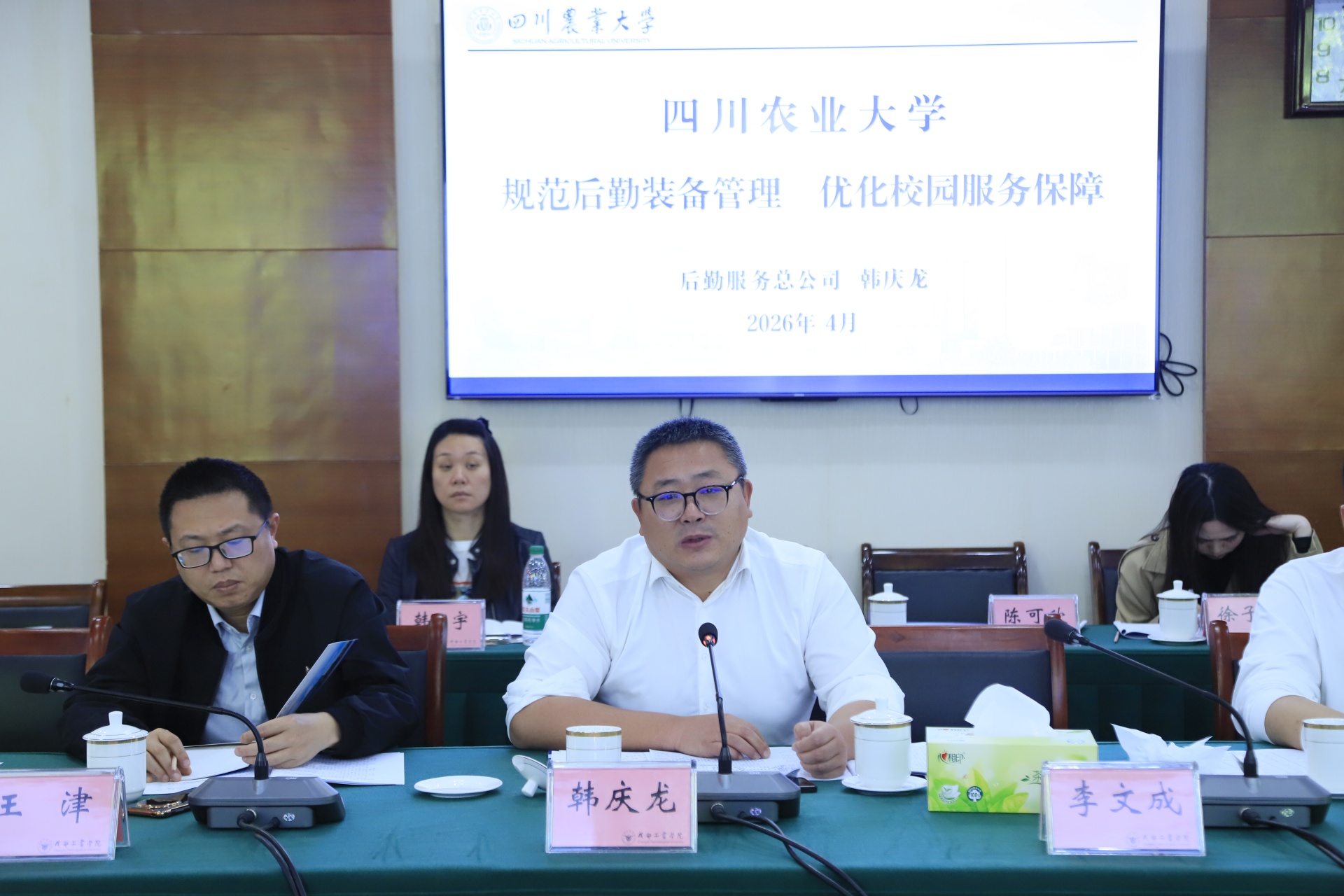 在专题分享环节,成都工业学院后勤服务集团总经理李文成围绕学校后勤装备运维、改造、服务创新等实操工作作专项实践汇报,涵盖教学与餐饮设施升级、公寓与能源管理、应急与基础保障四大维度;四川农业大学后勤服务总公司副总经理韩庆龙围绕自助洗涤、自助售货、直饮水等后勤服务市场化运营模式作经验交流,展示了“市场化合作+数字化监管”的有效路径。