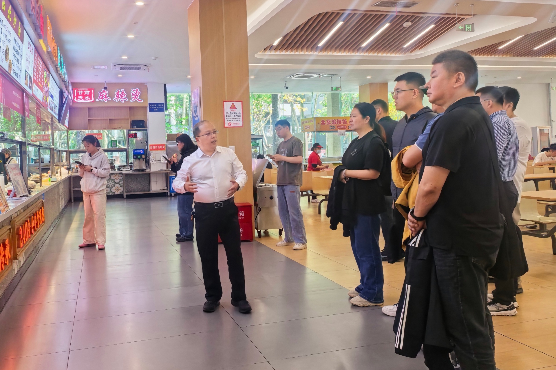 在实地参观环节,成都工业学院后勤服务集团总经理李文成就学生食堂、红十字应急救护培训基地、校史馆、陈毅纪念馆等进行了详细介绍。